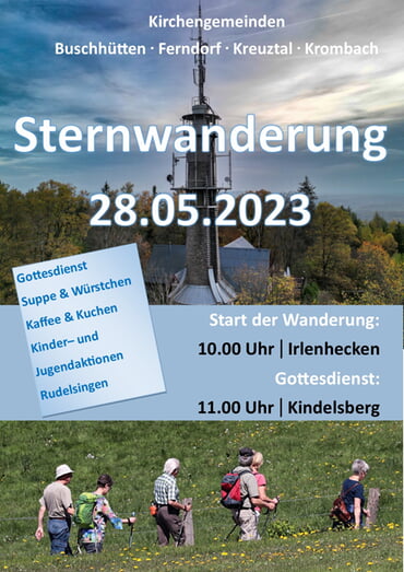 Vier Kirchengemeinden machen sich auf den Weg in die Vereinigung. Geplant ist eine Sternwanderung hoch zum Kindelsberg. Treffpunkt ist um 10.00 Uhr in Irlenhecken.