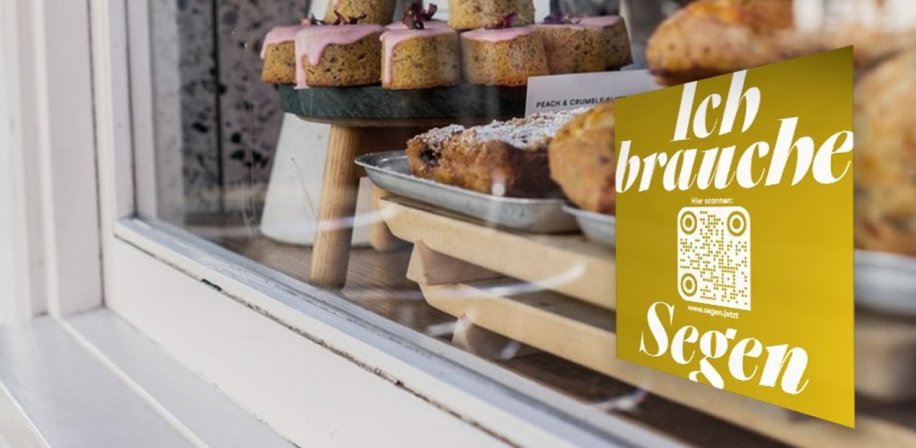Außerdem ist ein QR-Code abgebildet. Wer diesen mit seinem Handy scannt, wird auf die Website www.segen.jetzt geleitet und bekommt dort einen persönlichen Segensvers zugesprochen. Die Segensverse wechseln, so dass die Seite auch mehrmals besucht werden kann.