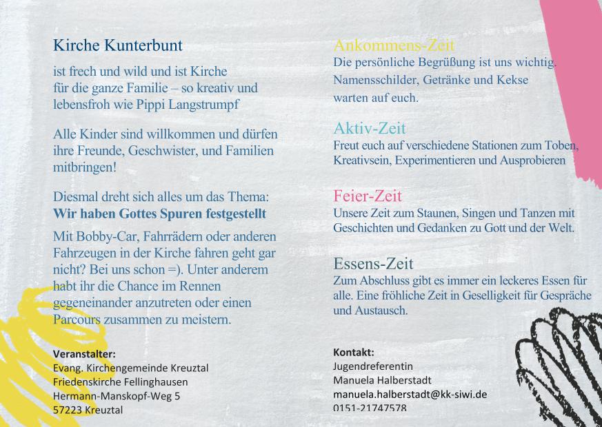 Leider musste Kirche Kunterbunt am 04.02.2024 ausfallen, wird aber verschoben auf Sonntag, den 03.03.2024!!!
