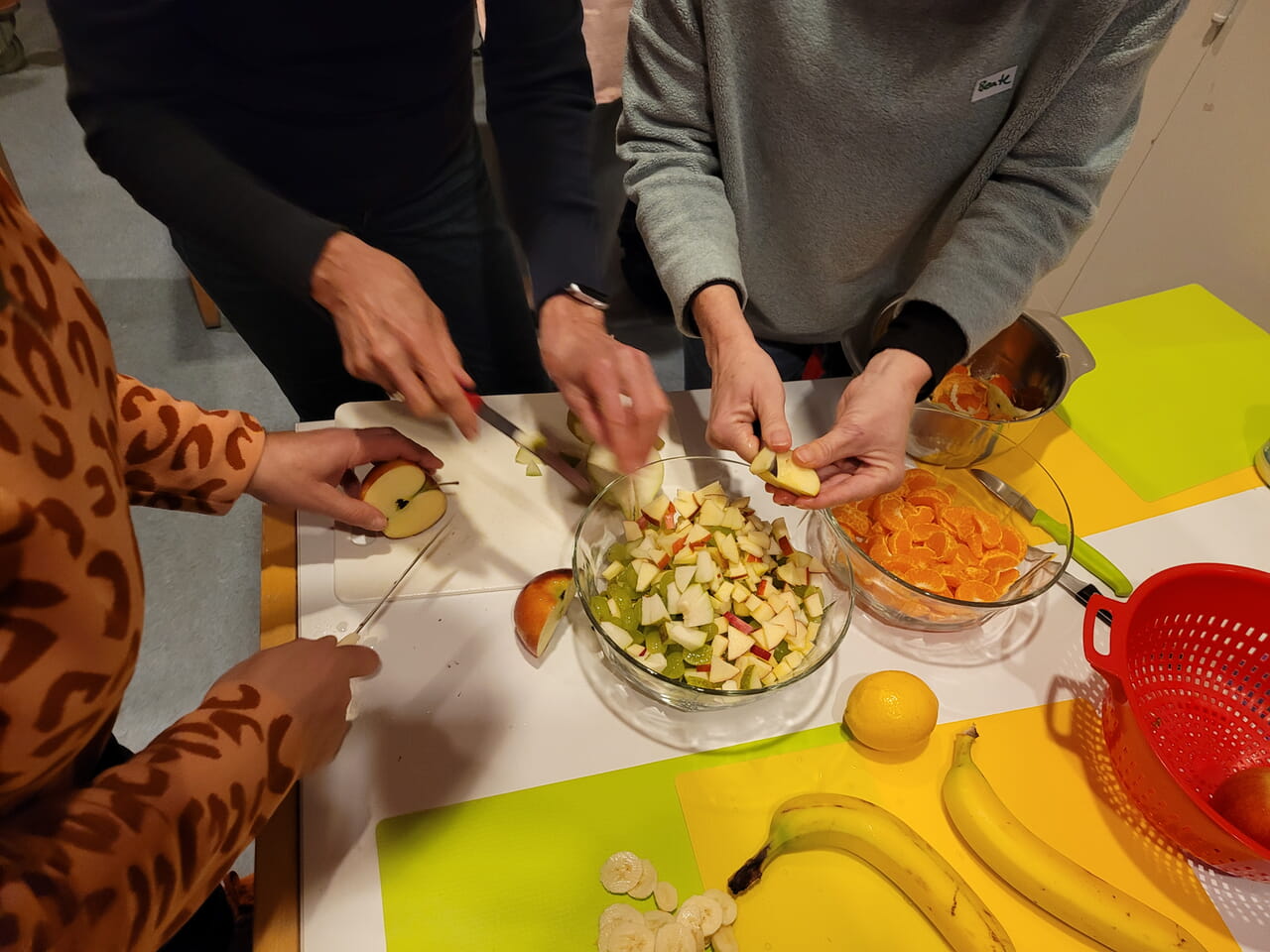 Wir möchten gemeinsam schneiden, kneten, rühren, würzen, schmecken, um anschließend das (vegetarisch) Gekochte beim Zusammensein genießen zu können. Nach gemeinschaftlichem Aufräumen und Spülen wird das Abendessen ca. gegen 21.00 Uhr beendet sein. Die Kosten werden umgelegt und in einer Spardose gesammelt (Mindestbetrag € 5,00 – und darüber so viel jede/r möchte und kann).