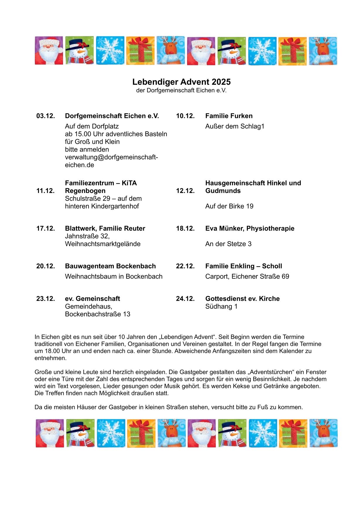 Lebendiger Adventskalender in Kredenbach-Ferndorf