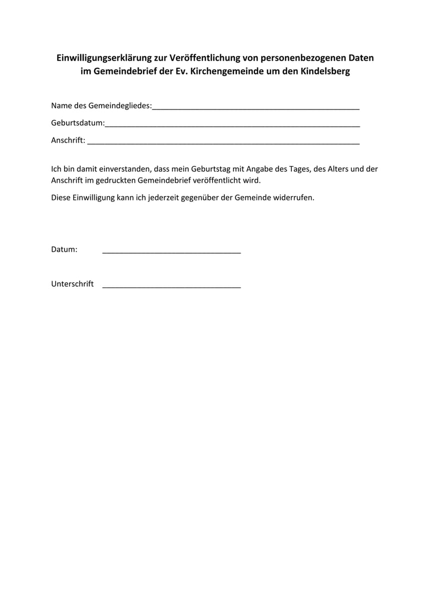 Einwilligung Veröffentlichung Geburtstage