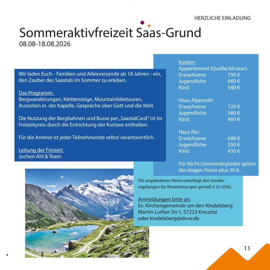> Sommeraktivfreizeit Saas-Grund 2026