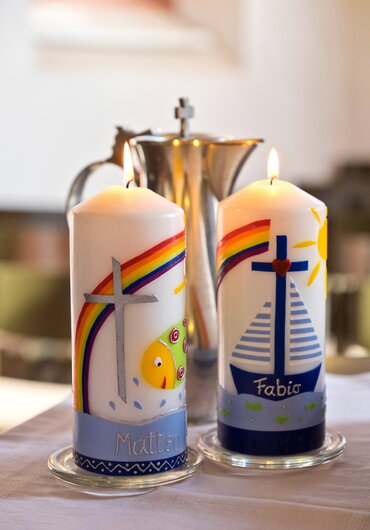 Die Taufe ist die festliche Aufnahme eines Menschen in die christliche Gemeinde. Im Taufgottesdienst gießt dabei die Pfarrerin oder der Pfarrer einige Tropfen Wasser über den Kopf des Täufling. Ob kleine Kinder getauft werden, Erwachsene oder Jugendliche vor der Konfirmation - durch das Sakrament der Taufe wird ihnen allen zugesprochen: Du gehörst zu Christus, Christus hat dich erlöst. (Quelle: EKD)
