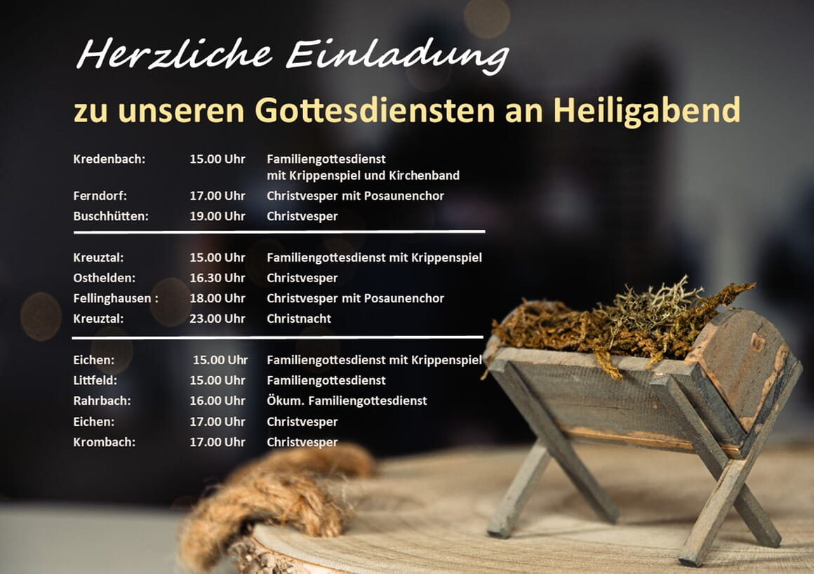 > Herzliche Einladung zu unseren Gottesdiensten an Heiligabend
